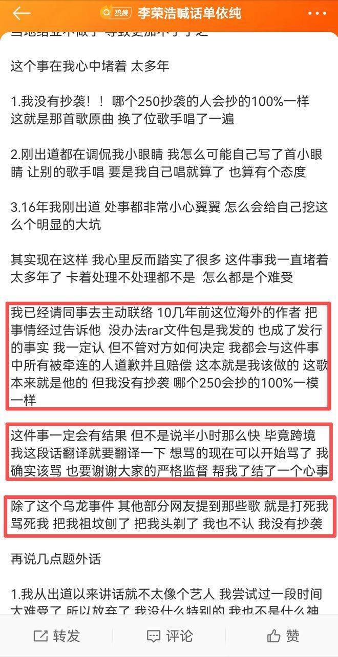 争议焦点集中在一首多年前的作品上,有观点指出该曲与某日本歌手的早期作品在旋律和结构上高度相似。面对质疑,李荣浩方面解释称这是早年练习用途的扒带作品,因文件管理混乱被误发,并非主观抄袭行为,还承诺会与原作者沟通道歉赔偿。
