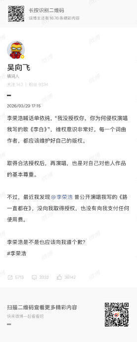 华语乐坛再次因版权问题掀起轩然大波!创作歌手李荣浩陷入双重舆论漩涡,一边高调维权他人翻唱,一边却被扒出早年作品涉嫌抄袭日本歌手,这种看似矛盾的操作引发全网热议,公众直呼其版权双标!